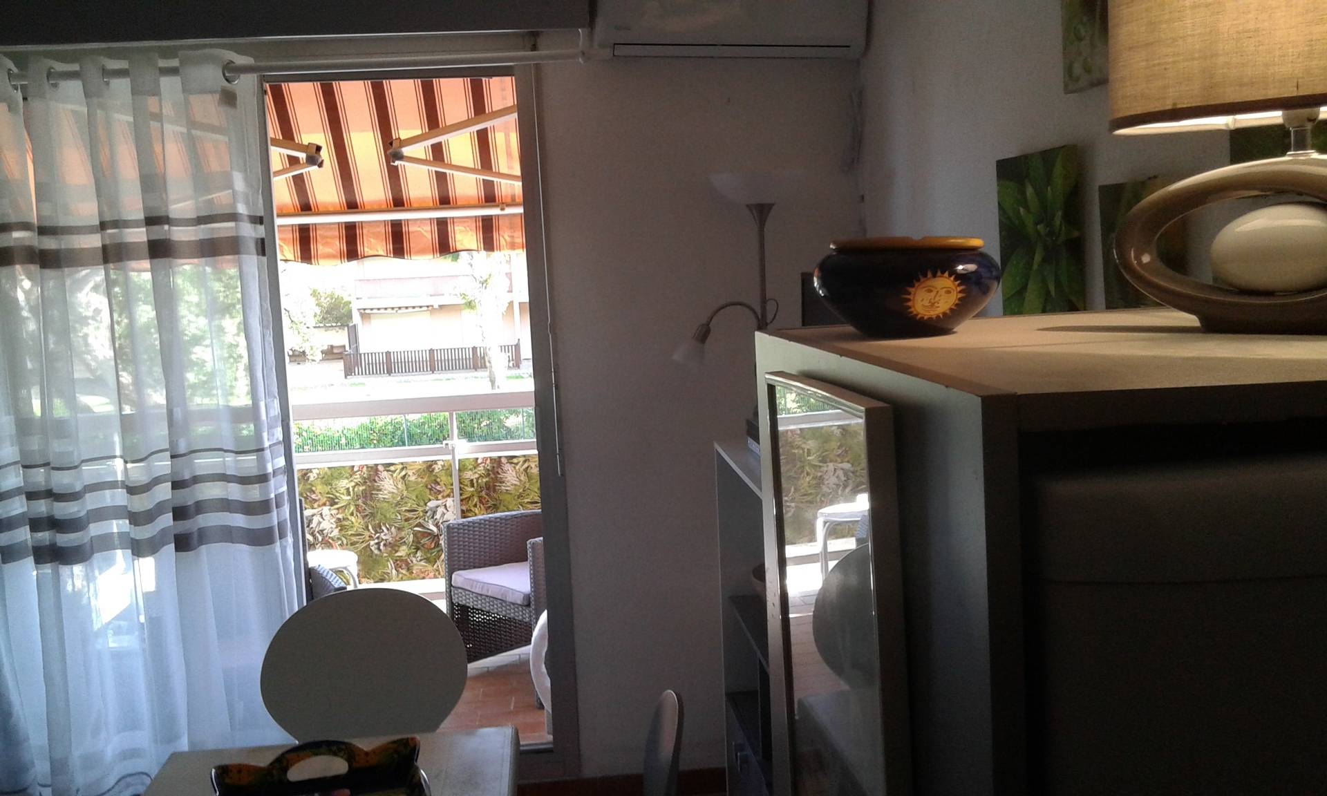 STUDIO situé au 1er étage dans une résidence avec gardien ,le STUDIO est idéal pour un couple, ou pour un couple avec 2 enfants, il est dans un état proche du neuf, dans l'entrée 2 lits superposés ,1 salle de bain avec baignoire ,1 wc , dans le salon 1 cuisine Américaine, tout équipé,1 grand réfrigérateur avec congel,1 four avec rotissoire , 1 micro onde, 1 machine a laver,etc etc ,dans le salon 1 bar, 1 meuble avec télé, 1 clim, 1 lit armoire escamotable,(tres confortable, 2 pers, Sur la terrasse vue Mer 1 salon de Jardin (2 fauteuils 1 table 1 banquette2 places ,