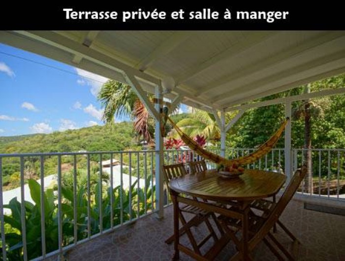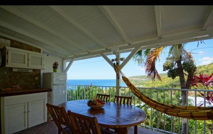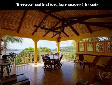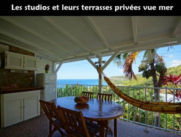 Les terrasses peuvent être communiquantes en cas de location groupée avec vue sur la mer des Caraïbes.
