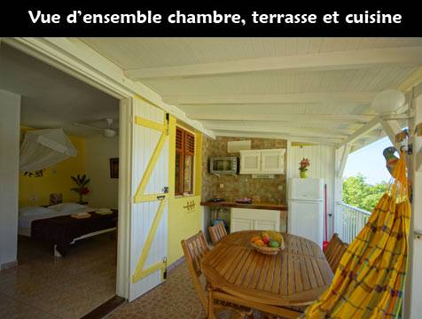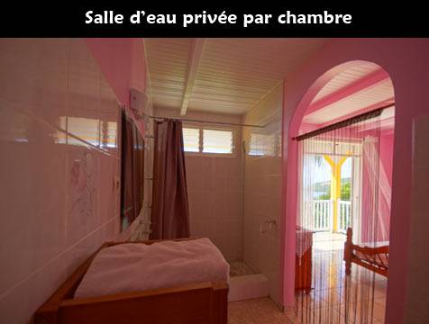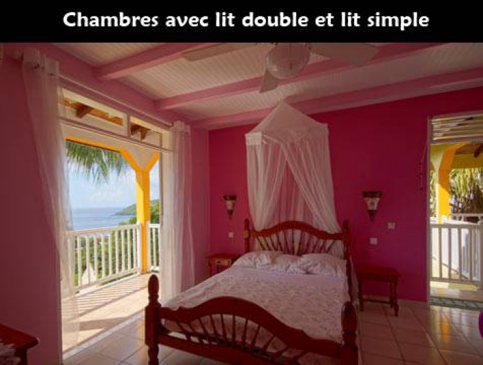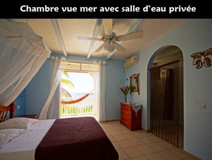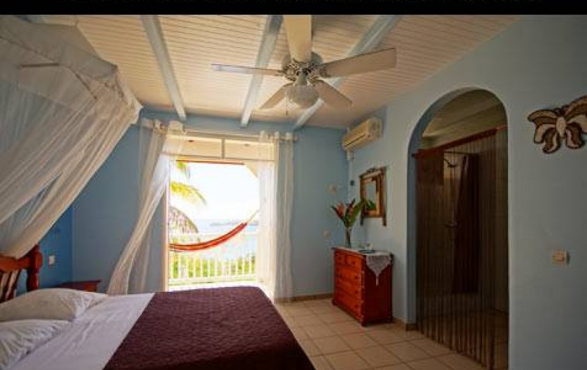 Le gîte propose cinq chambres d'hôtes spacieuses à la location pour un séjour inoubliable en Guadeloupe. Quatre chambres ont vue sur la baie de Malendure, une chambre donne sur le jardin tropical.