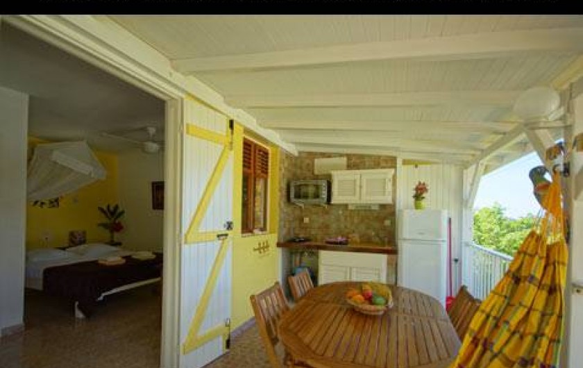 Nos deux studios sont identiques : spacieux, climatisés, cuisine équipée sur la terrasse, salle d'eau. La chambre possède un lit double et des lits superposés, des rangements.