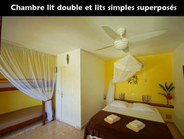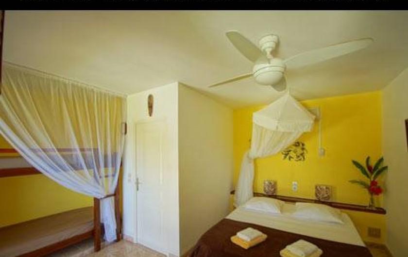 En location saisonnière, deux studios tout équipés avec pour chacun : terrasse privée, climatisation, grand lit double séparé des lits superposés, salle de bain, rangements.