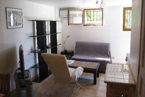 appartement 38m2, refait à neuf, totalement indépendant avec jardin dans villa; grand séjour, coin cuisine équipé, salle d 'eau,chambre indépendante, patio plein sud 19m2, parking, accès piscine et tennis.