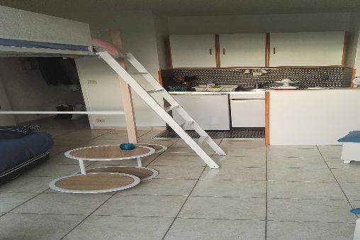 location d'un studio à Courseulles s/mer dans le Calvados en Normandie - Vue imprenable sur le port & la mer - avec ascenseur- Entrée dans laquelle 1 placard - salle de bain avec toilette- Séjour équipé d'une kitchenette - un coin nuit en mezzanine ( deux personnes), banquette lit "BZ" (2 personnes)- Loggia fermée dans laquelle se trouve une grande commode - Télévision - Proche des plages du débarquement ainsi que des ville d'Arromanches - Bayeux - Caen Nombreux sites à découvrir.
