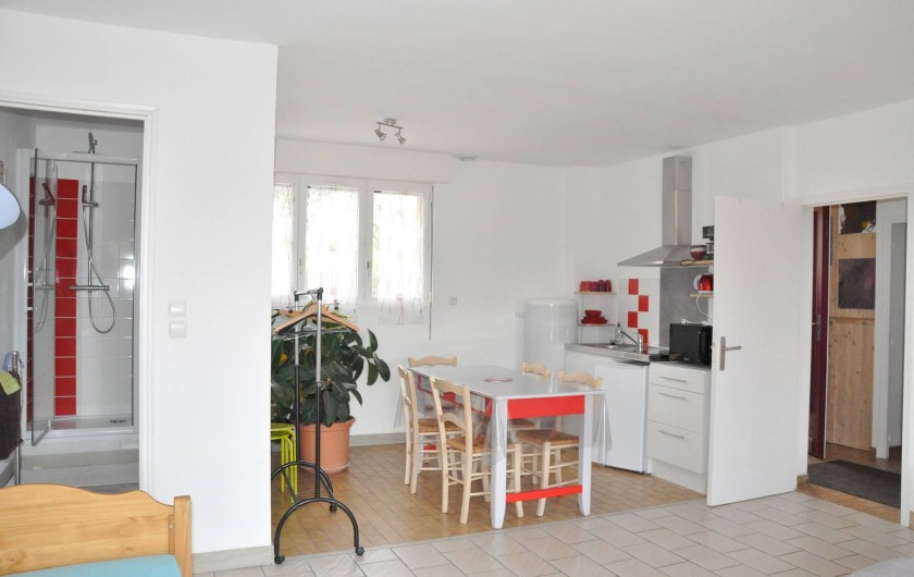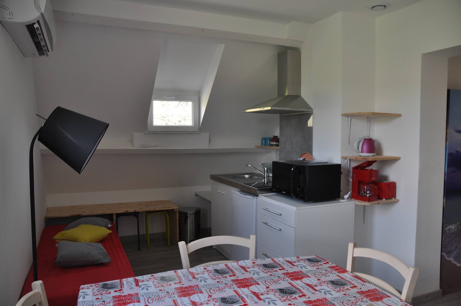 • Lits 140, canapé convertible ou lit gigogne, four micro-onde convection, plaques inductions, grille-pain, cafetière, bouilloire, vaisselle, machine à laver, fer à repasser, aspirateur en commun, TV, Wifi gratuit, clim.