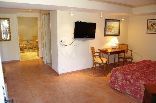Location du studio "Garrigue" à Fontvieille, en Provence, au cœur du parc régional des Alpilles, aux portes de la Camargue, non loin du Lubéron et des Cévènnes, dans un mas ex-hostellerie Saint-Victor. Dans un cadre de campagne et un environnement calme.