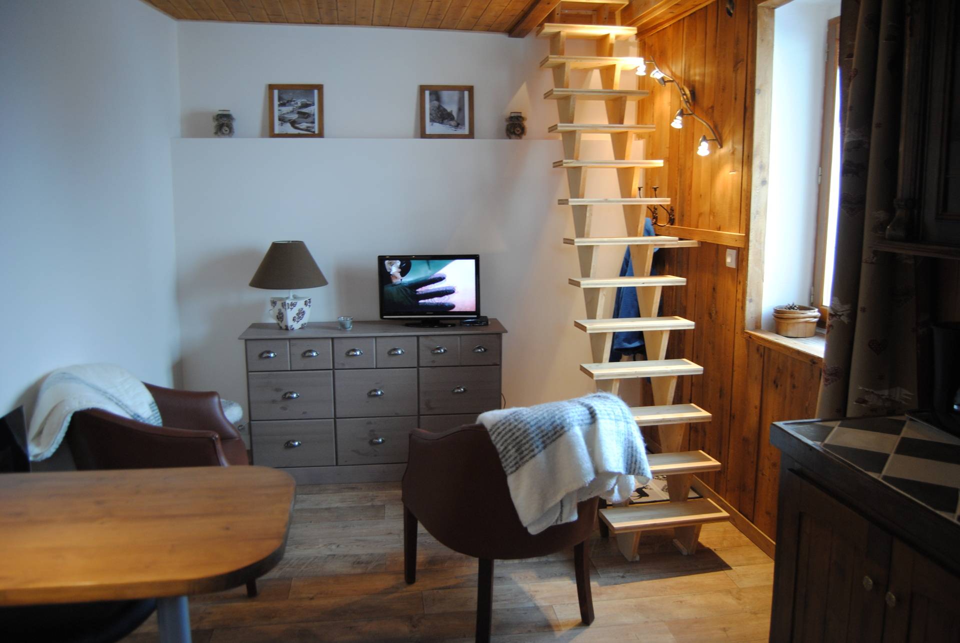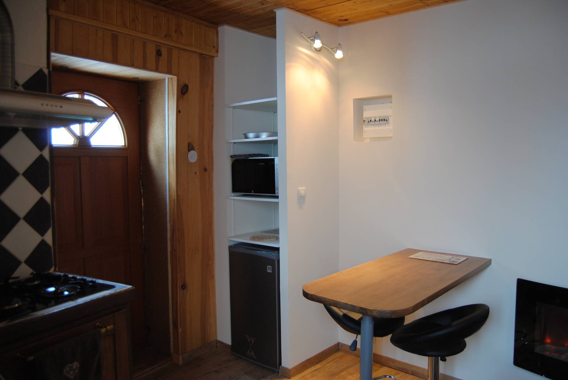 Préférez un séjour en pleine nature a 1290 m d'altitude et profitez d'un panorama incontournable sur les vallées et montagnes environnantes. Dans une ancienne ferme de montagne, studio de 25m² pour 2 personnes. Au rez de chaussée, kitchenette avec coin repas et espace salon. A l'étage, salle d'eau ouverte, wc séparé, espace couchage avec lit en 130. Accès libre a une grande terrasse plein sud. Équipements : Four micro ondes grill, frigo table top, tv, plaque