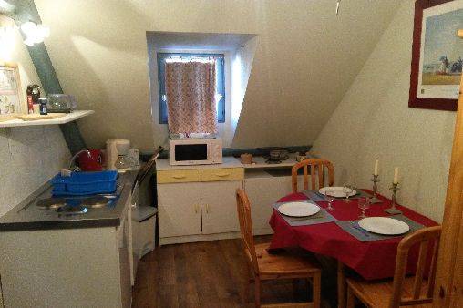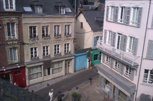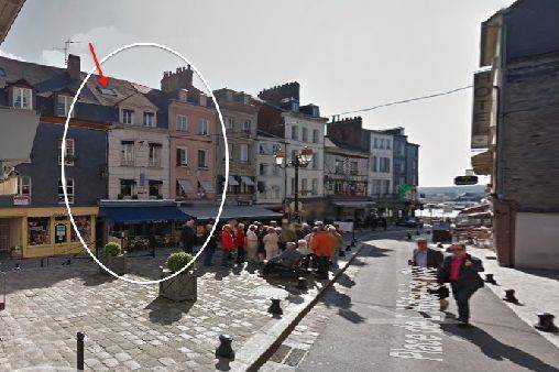 Location du studio "Le Hamelin" se situant au 4e étage d'un immeuble de la place Hamelin, au centre de Honfleur. Le studio est très lumineux, il dispose d'un grand velux orienté sud-sud-ouest et d'une fenêtre orientée au Nord-est avec vue sur le pont de Normandie.