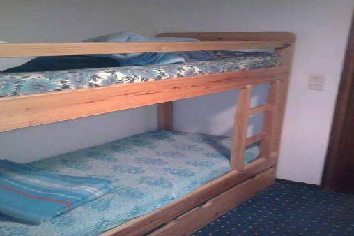les lits superposés disposent de tiroirs de rangements, une salle de bain avec baignoire et une vasque, un WC indépendant.