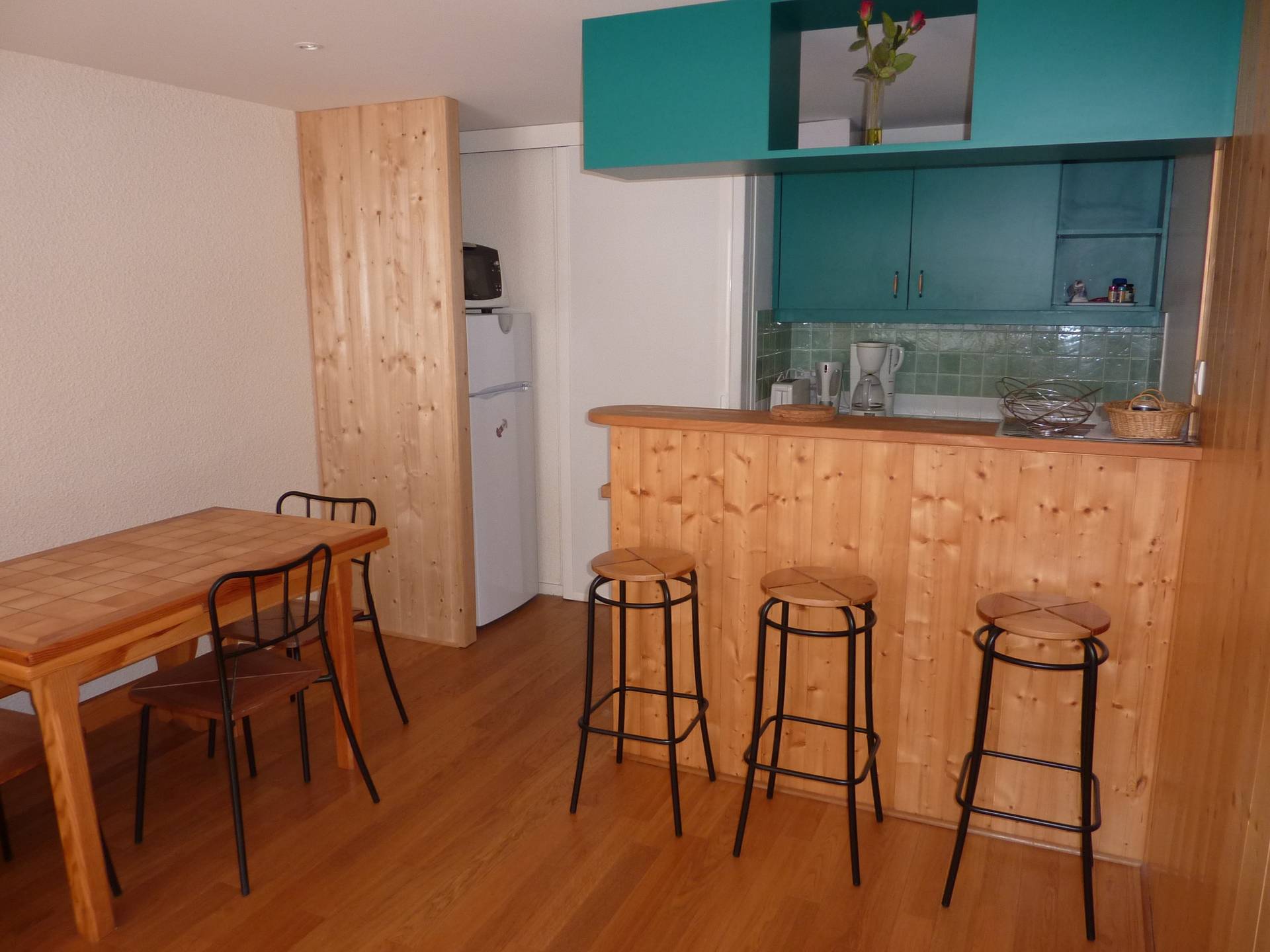 La cuisine est équipée de plaques vitro, d'un lave-Vaisselle, bouilloire et cafetière électrique, grille pain, frigo-congélateur, appareil à raclette...