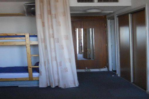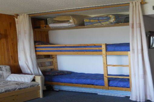 Coin montagne, avec 2 lits superposés en 80, séparés de la salle à manger par un rideau.