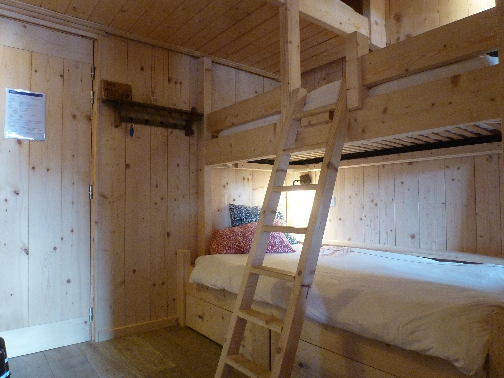 D'autre part, Brisebise possède un coin montagne avec 3 couchages, bien séparé de l'espace de vie par une baie vitrée et une porte coulissante. Une salle de bain avec baignoire, de grandes penderies, un placard faisant office de buanderie et des toilettes séparées complètent le tout.
