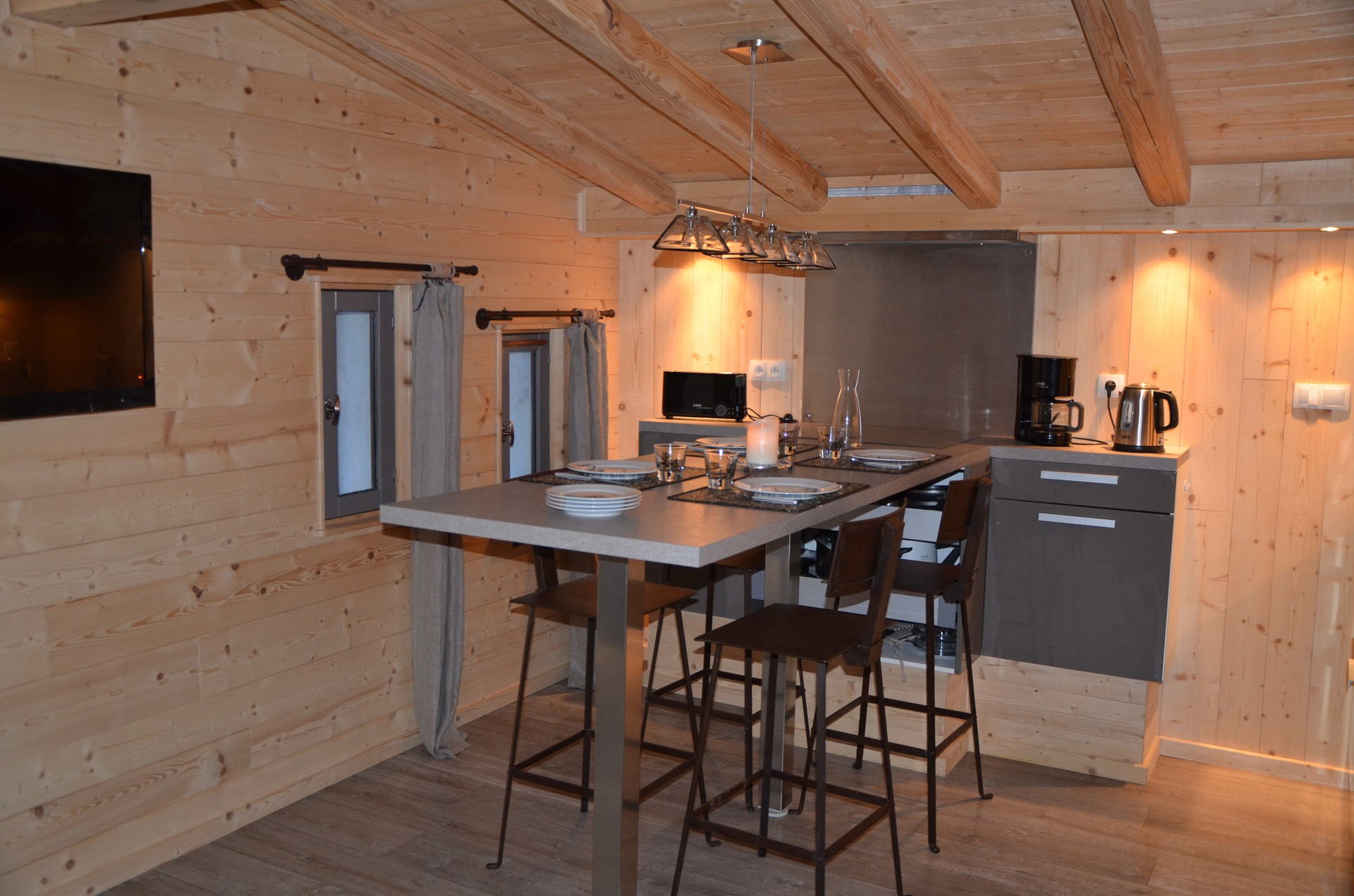 Bardé d'épicéa, rehaussé par une décoration choisie, Brisebise offre une ambiance traditionnelle et chaleureuse.