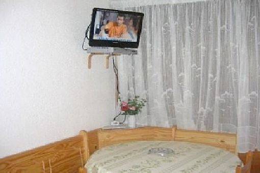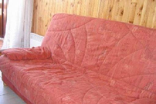 Dans l'entrée 2 lits superposées rabattables et 1 clic-clac dans la pièce principale séparée de l'entrée par une porte, coin cuisine, coin repas, salle de bain/toilette, balcon.