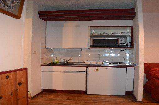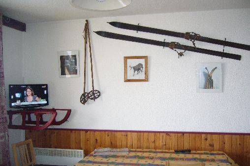 Studio 4/5 personnes immeuble APOLLO 3ème et dernier étage avec ascenseur. Aux pieds des pistes et au centre de la station, au-dessus de la galerie marchande avec vue côté vallée. Studio composé d'une entrée, alcôve avec 3 lits superposés, salle de douches, WC séparés. Séjour avec clic clac 2 personnes, kitchenette : plaques électriques, frigo, mini four, cafetière électrique, TV, aspirateur.