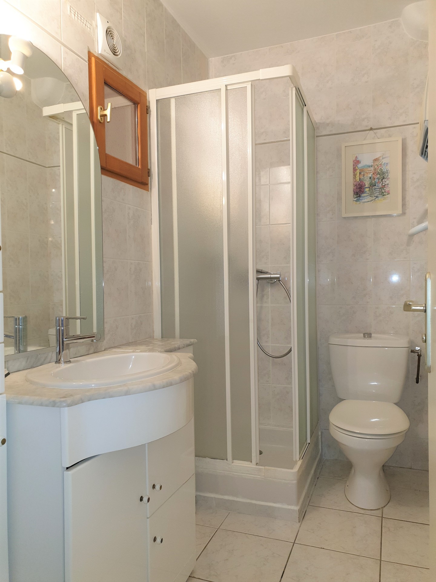 Equipements : Climatisation réversible, store électrique, volet roulant électrique, téléviseur écran plat muni d’un lecteur de DVD. La cuisine intégrée est équipée d’un lave-vaisselle, d’une plaque vitro céramique, d’un réfrigérateur avec compartiment congélateur, d’un lave-linge. Sèche-cheveux et aspirateur sont à disposition dans l’appartement.