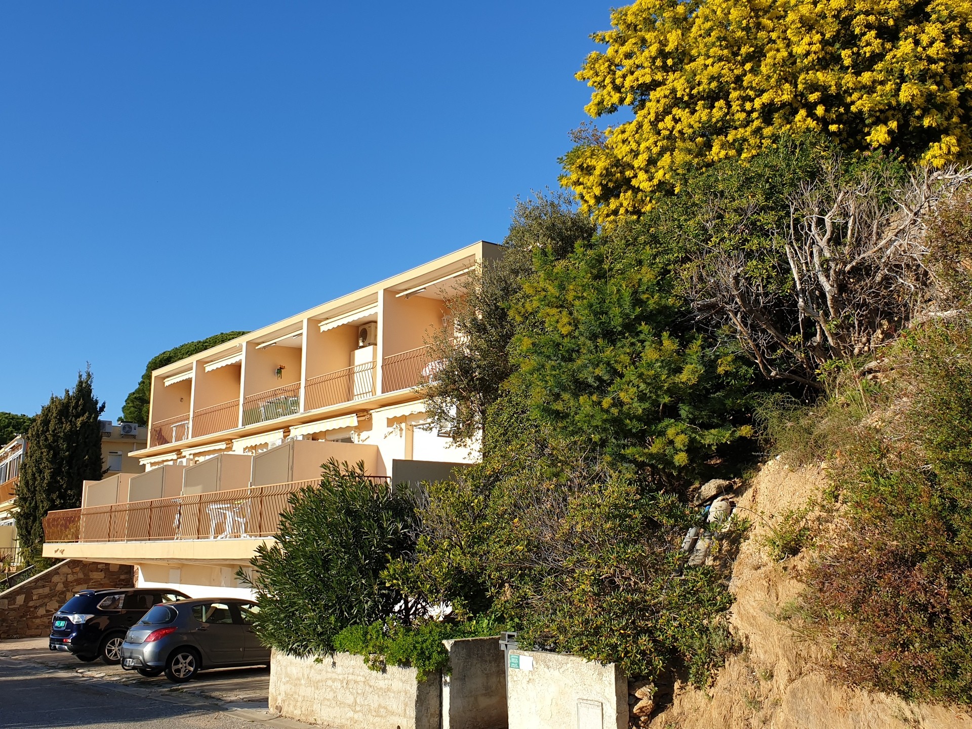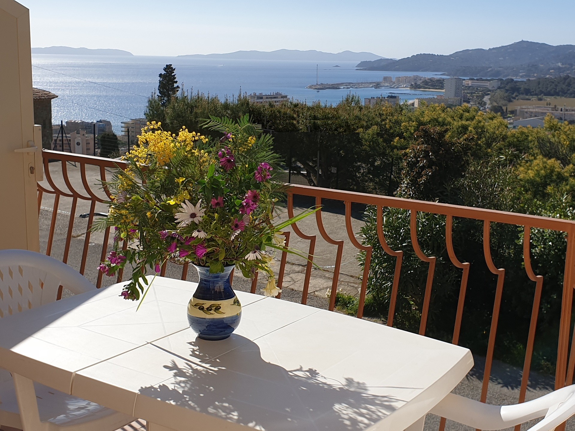 Agréablement situé sur les hauteurs du Lavandou, dans une résidence de 3000 m², arborée, gardiennée tout au long de l’année, très calme et dans la verdure, le logement, de décoration soignée, tout confort, 3*, conçu pour accueillir trois personnes, est situé plein sud, au premier étage d’un bâtiment comportant deux étages. Sa grande terrasse bien exposée, d’environ 11 m², offre une large vue sur la mer, sur les îles d’Or (Port-Cros et Le Levant) et sur les collines du Cap Bénat. Elle