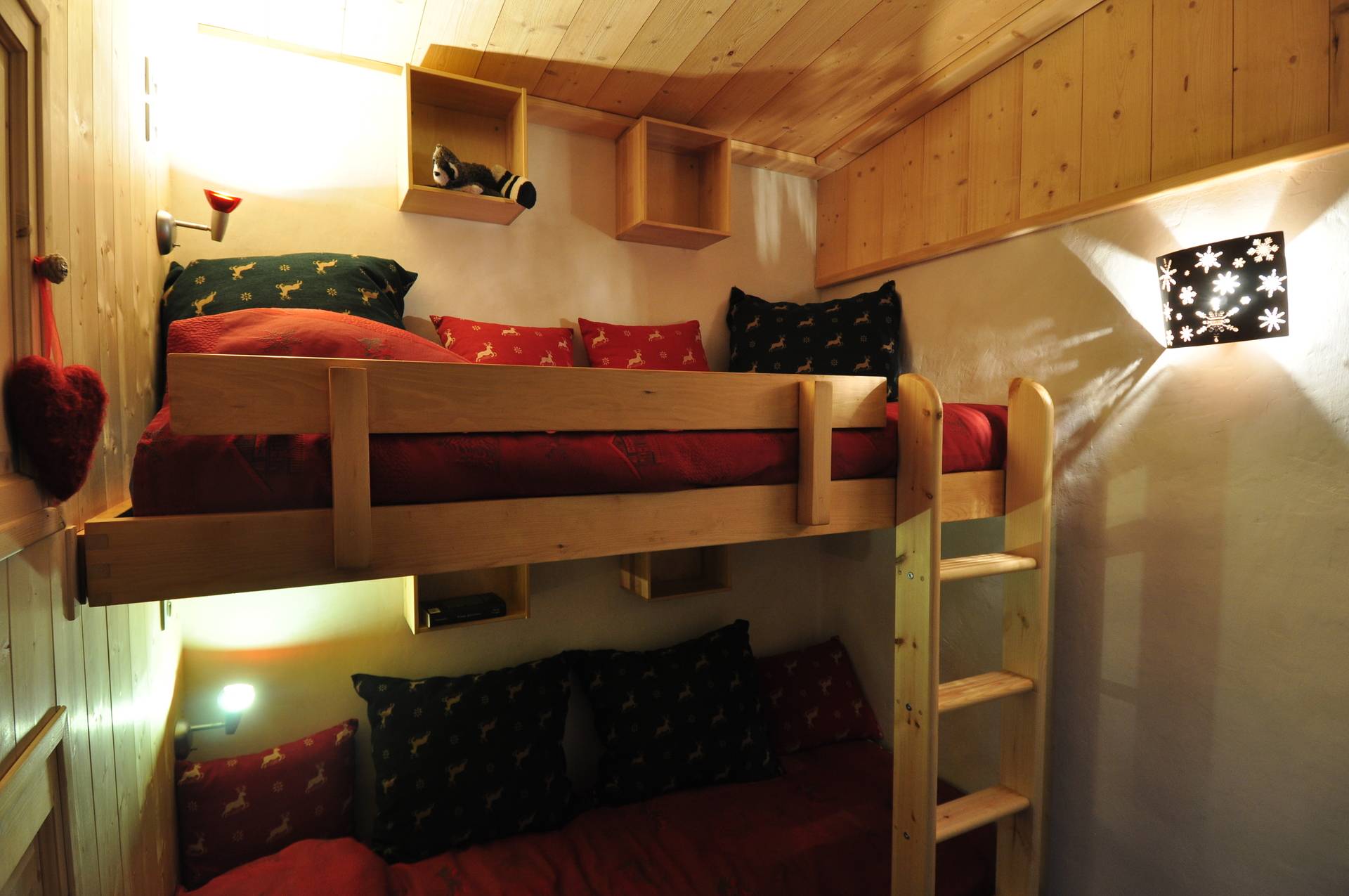 Charmant coin montagne "esprit chalet", équipé de 2 lits superposés et d'un lit tiroir avec sommiers et matelas neufs.