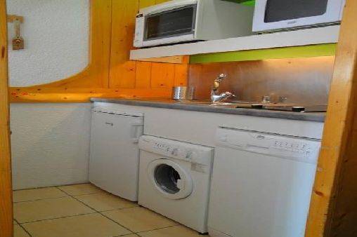 Studio 5 personnes aux Arcs 1800 en Savoie dans la région Rhône-Alpes, vue dégagée balcon sud/ouest. Centre station à proximité des pistes. Entrée avec coin-nuit (2 lits superposés + lit tiroir), salle de bains/WC, cuisine entièrement équipée, séjour avec canapé-lit 2 personnes, TV écran plat. Possibilité parking couvert.