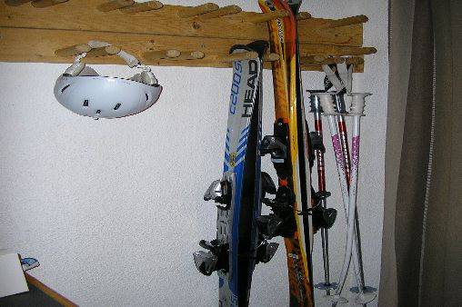 * un coin montagne à l'entrée avec 3 couchages et multiples rangement pour le matériel de ski