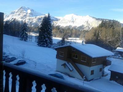 Studio dans résidence calme, tout confort, très bien situé a 700 m du village 10 mn à pied (chemin piétonnier très agréable éclairé le soir). Très bonne exposition, balcon ensoleillé jusqu'au coucher du soleil sur montagnes. Navette gratuite pour aller aux pieds des pistes ou au centre du village.Supermarché à 50 m. (pains viennoiseries essence ...). grand parking privé, casier a skis. il est équipé d'un clic clac 2 personnes avec une très bonne literie et de 2 lits superposés.