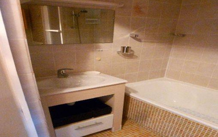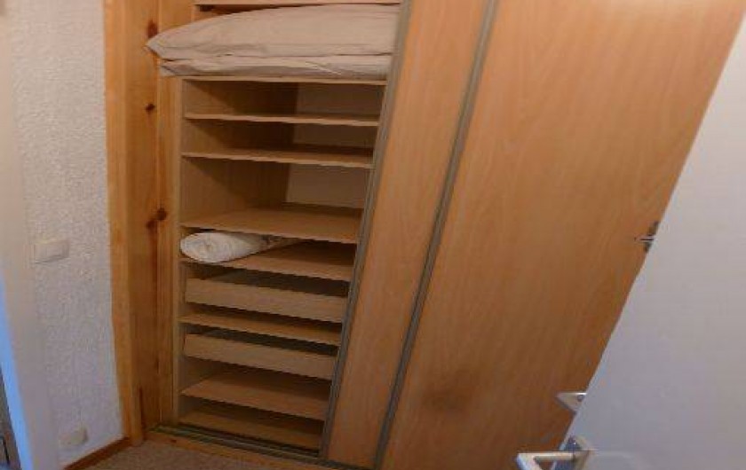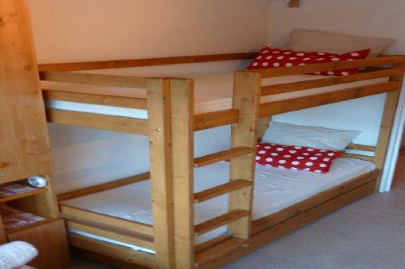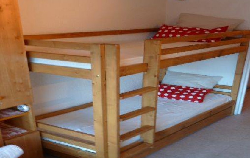 Lit armoire + 2 lits superposés, cuisine équipée dont micro-ondes, four-grill, grand réfrigérateur-congélateur. / Murphy bed + 2 bunk beds, kitchen with microwave, oven, big fridge + freezer.