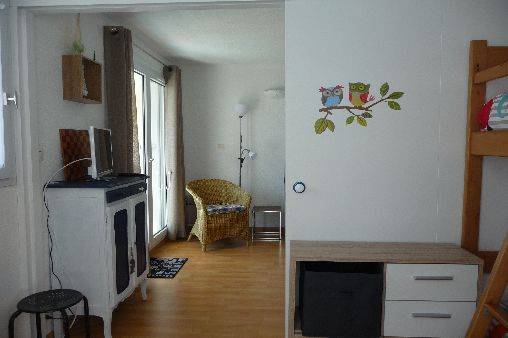 - pièce de vie avec 1 banquette lit de 140 (neuve et de qualité), ouvert sur un balcon