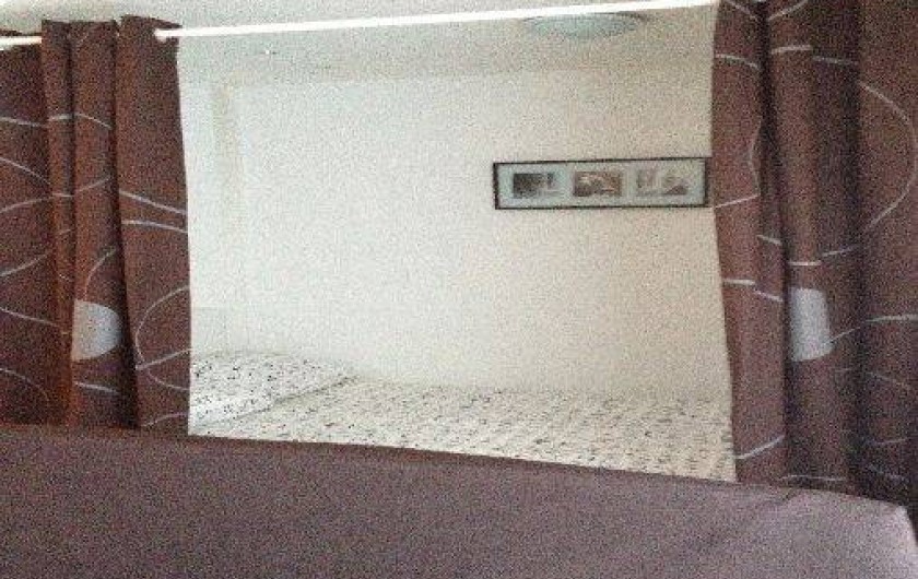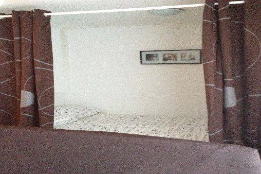 alcôve fermée par un rideau avec 1 lit double 140x200 cm,1 salon avec une table et des chaises, 1 canapé lit largeur 140x200 cm, une connexion ADSL en Wifi, une télévision et 1 chaîne hifi, 1 salle d'eau avec douche et toilettes,