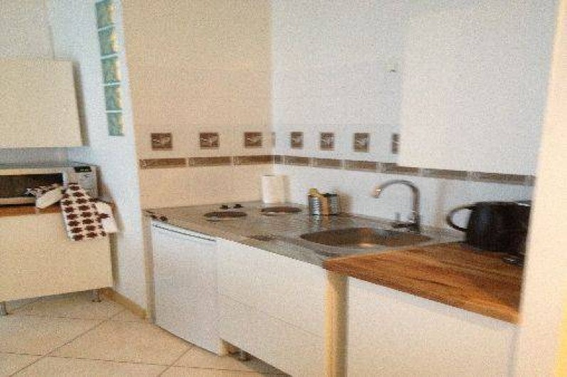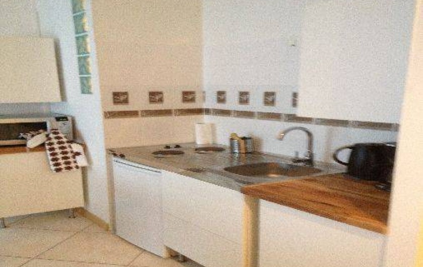 1 kitchenette équipée avec 1 réfrigérateur, plaques électriques, micro onde avec four et grill, cafetière, bouilloire et nécessaire de cuisine, lave linge.