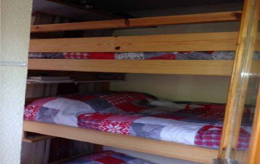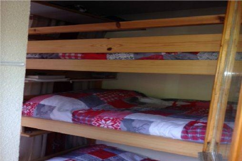 Coin Montagne : 3 lits superposés (0.90/2) Le coin Montagne et la pièce à vivre est séparé par une porte située dans le couloir au niveau de la cuisine