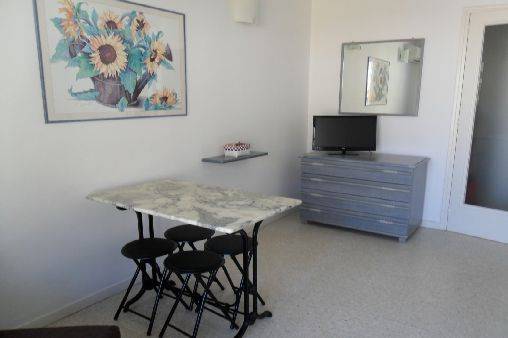 Location saisonnière studio à Menton, au bord de mer, vue plage à 50 mètres, proche tous commerces. 4eme étage avec ascenseur, couchage ,pour deux personnes. Possiblités autres couchages. Salle à manger, kitchenette et salle d'eau avec WC.