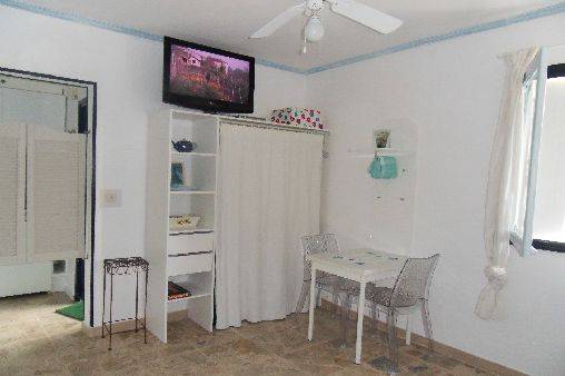 Séjour/chambre avec banquette BZ, téléviseur couleur écran plat 80cm (chaines locales, régionales et nationales par TNS), meuble/penderie, coin repas.