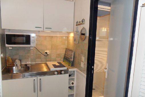 Le studio est meublé (18m2), au 2ème étage d’un petit immeuble résidentiel très proche de la mer (15 mètres de plages de sable).