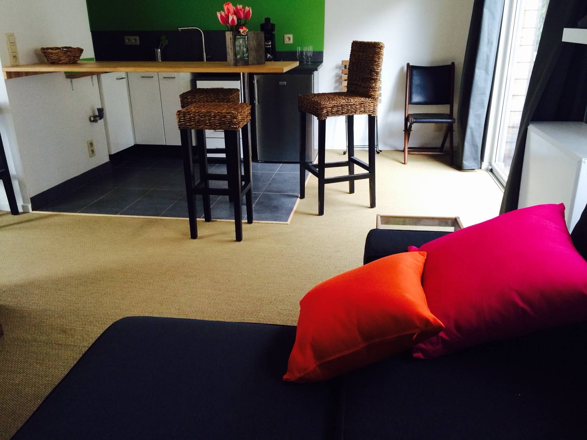 A Namur même, au centre de la Wallonie, à proximité de nombreuses activités culturelles, sportives, touristiques. Proche du Hall des Expo. A 2 km du vieux centre et de l'université. Sans aucun ralentissement depuis l'autoroute. Avec un parking aisé et gratuit!!
