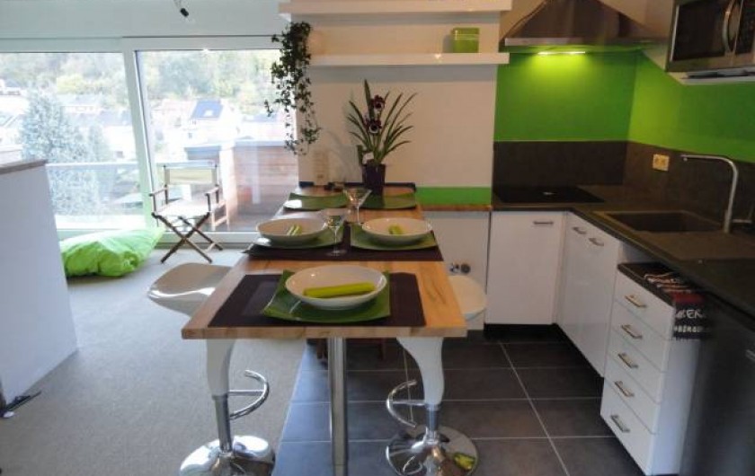 2 studios neufs, un penthouse et une appartement avec terrasse entièrement équipés et connectés. Hyper fonctionnels comme pied à terre. Idéal pour un séjour professionnel, touristique, dans l'attente d'un logement ou dans le cas d'une séparation provisoire.