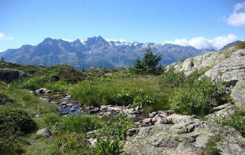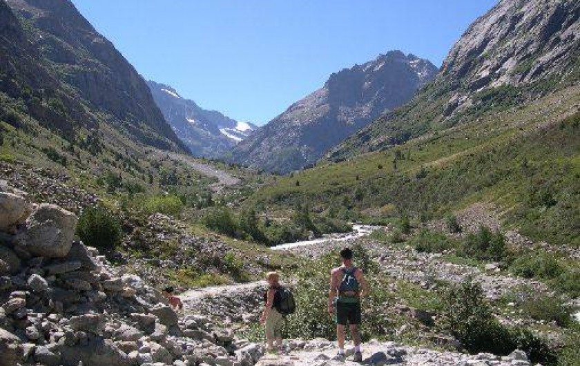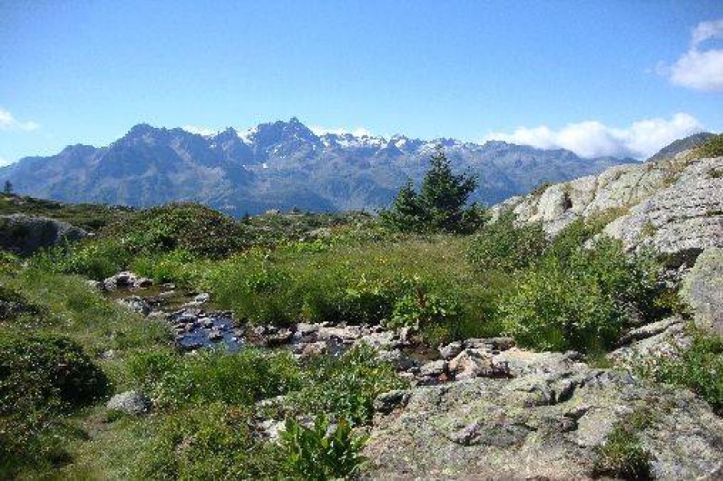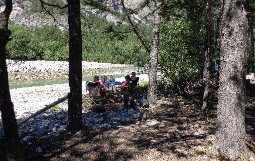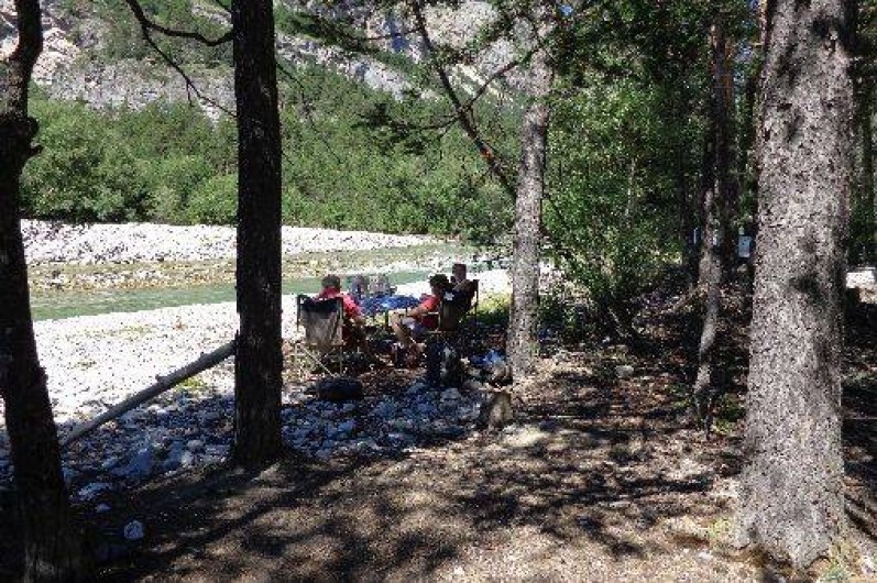 Face à l'appartement, parking, jeux de boules, jeux d'enfants. A côté jardin disponible avec salon, barbecue.