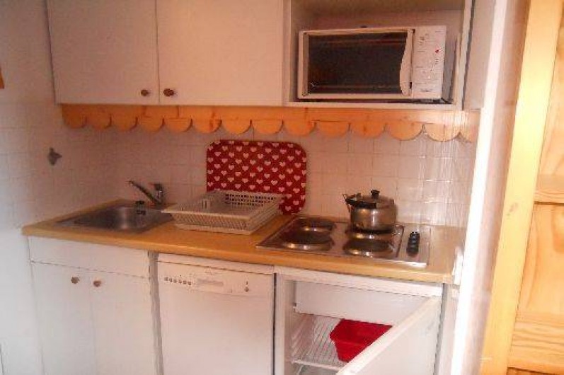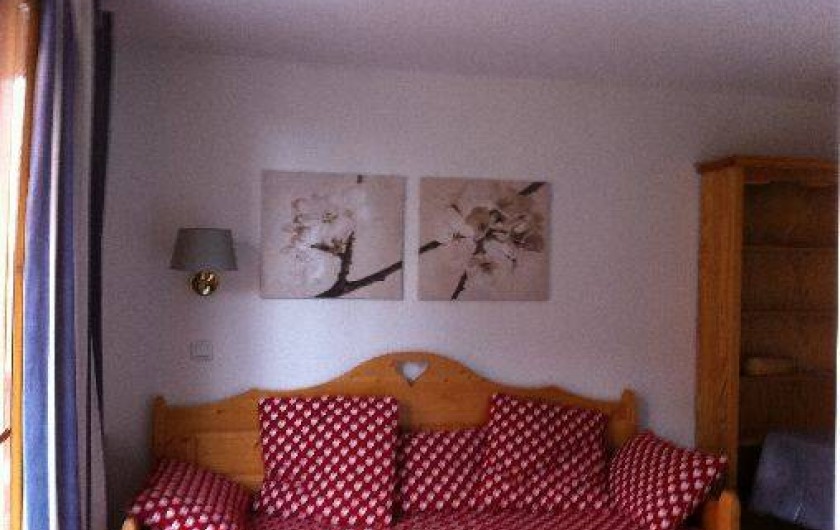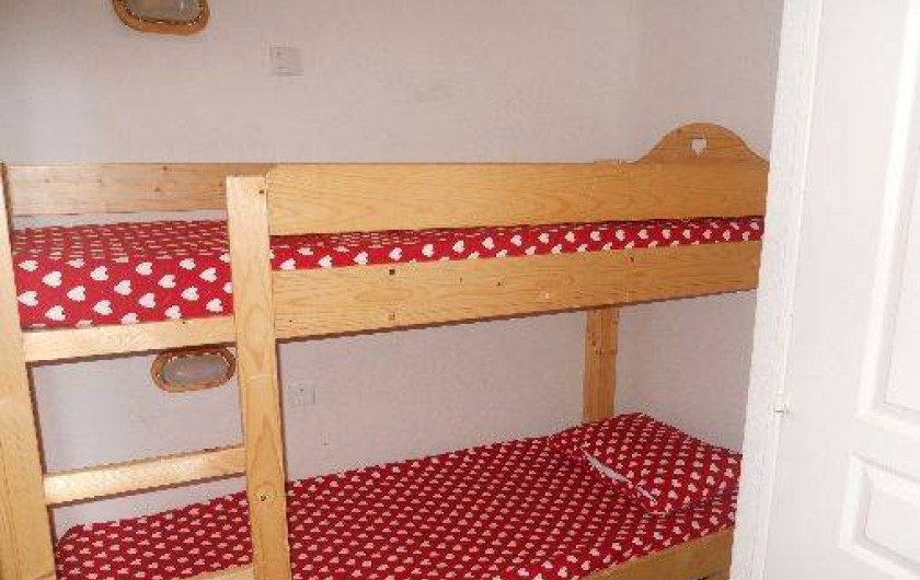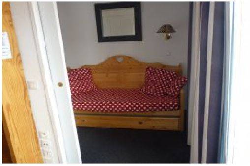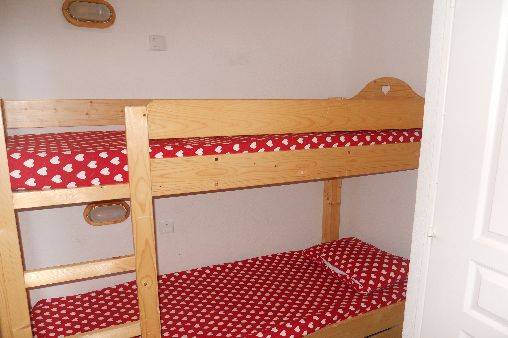 Entrée coin nuit avec 2 lits superposés, séparé du séjour par une porte. Coin cuisine équipée, séjour agréable et ensoleillé avec lits gigognes, une chambre fermée par une cloison coulissante avec fenêtre et lits gigognes. Salle de bain et wc séparés. Balcon exposition est. Casier à ski.