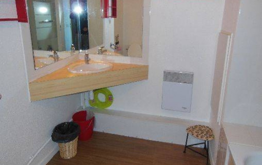 Grande salle de bain avec WC. Appartement équipé pour personne à mobilité réduite.