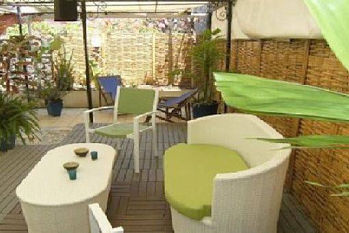 étage avec chacun son petit balcon individuel où vous pourrez prendre vos repas en intimité, vous avez aussi une table à l' intérieur et vous vous partagerez une terrasse commune ombragée et fleurie où chaque studio dispose d' un coin repas personnel avec tables, chaises et chaises longues;