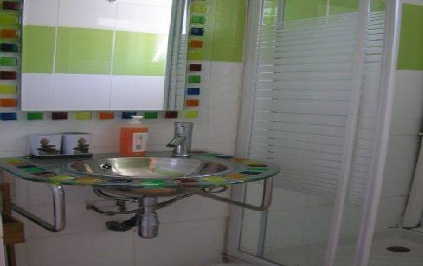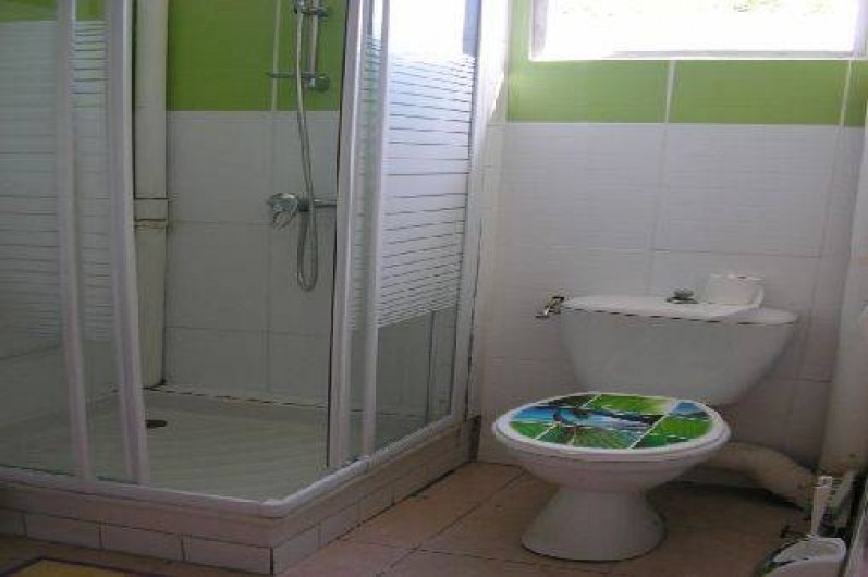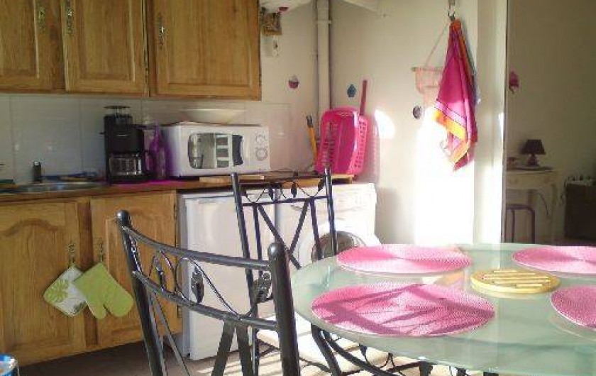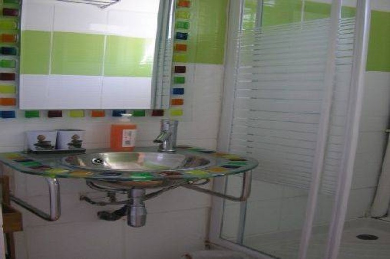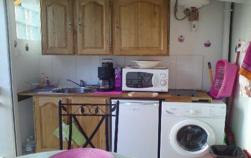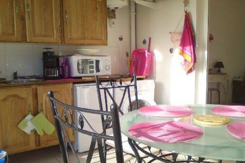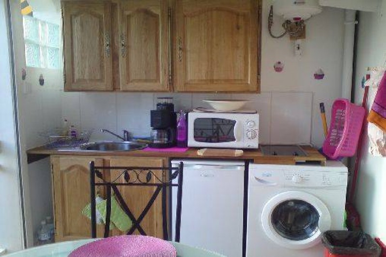 Une cuisine en terrasse en chêne vous permet de profiter du jardin face à la piscine (machine à laver, four micro-ondes, plaques vitro-céramiques, frigo, cafetière, bouilloire...). Une salle de bain avec cabine de douche.