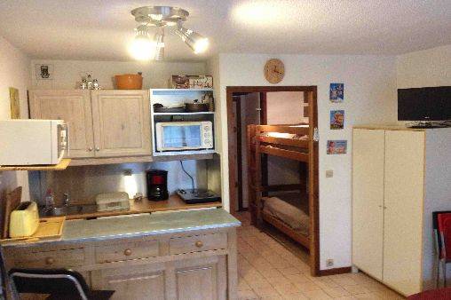 Il s’agit d’un studio de 24 m2 en rez-de-jardin comprenant une pièce principale avec une kitchenette et un coin montagne séparé ainsi qu’un WC séparé et une salle de bain avec radiateur sèche serviette.
