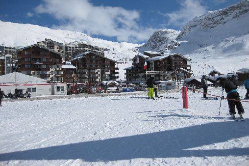 Location d'un studio pour 4 personnes, pied des pistes, résidence Rond Point des Pistes à Tignes Val Claret. Située au 5ème étage avec balcon, sans vis à vis, vue panoramique dégagée sur pistes. Exposition ensoleillée. Studio parfait état.