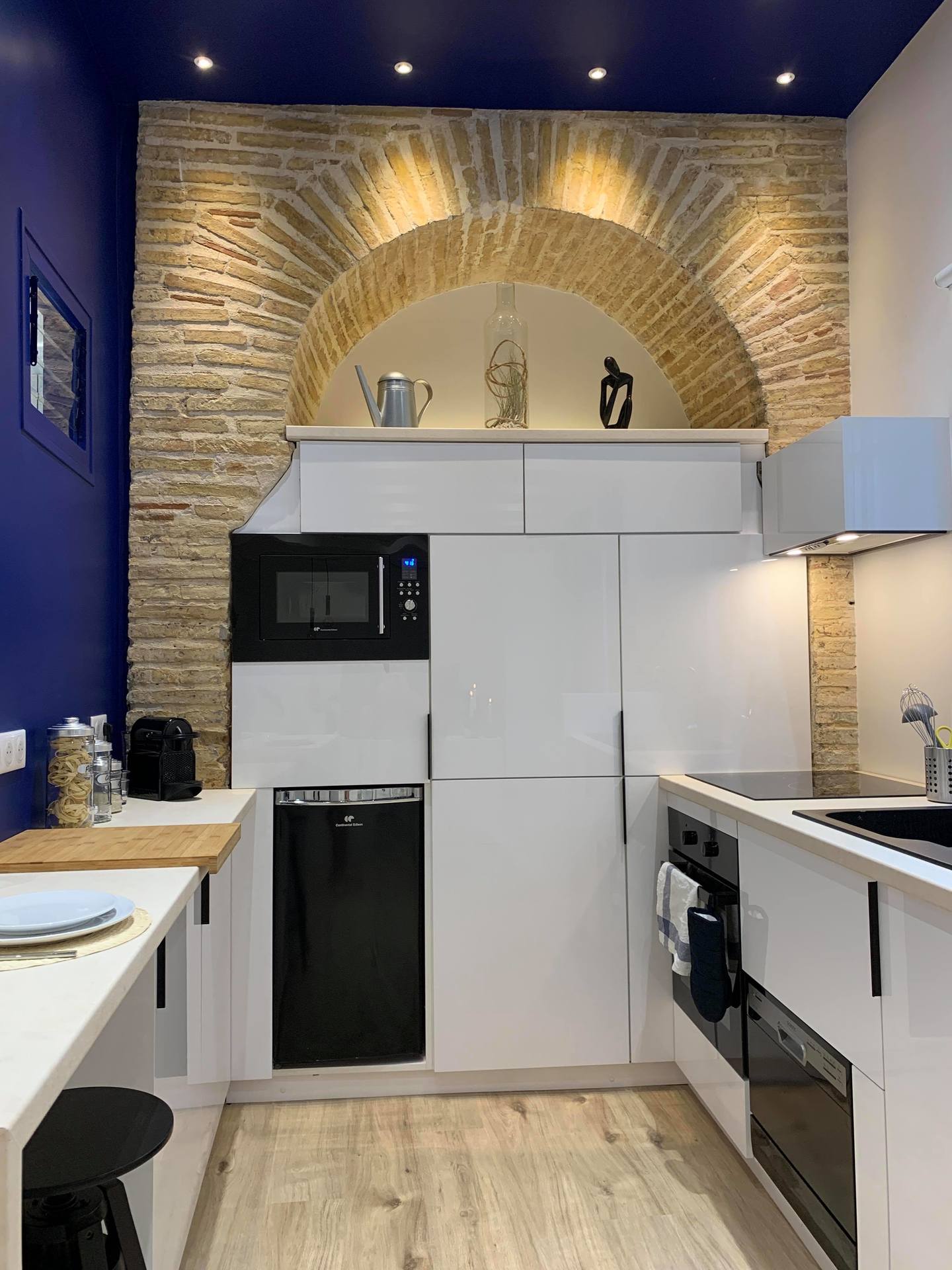 - Cuisine entièrement équipée : réfrigérateur, friseur, four micro-ondes, plaques à induction, lave-vaisselle, bouilloire, grille pain, machine à café Nespresso, ustensiles de cuisine.
