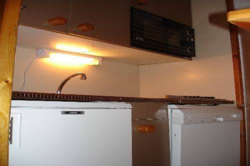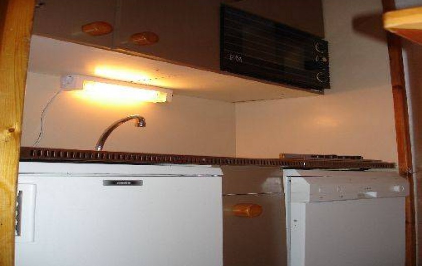 Coin cuisine équipé d'un lave vaisselle, frigo, mini four, 4 plaques de cuissons, cafetière... et toute la vaisselle