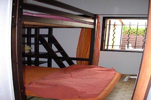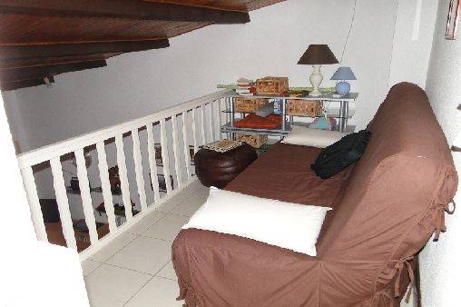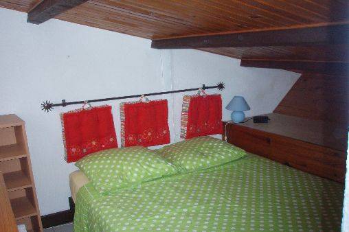A L'étage : une chambre avec lit de 140 et une loggia avec clic clac, télévision, DVD