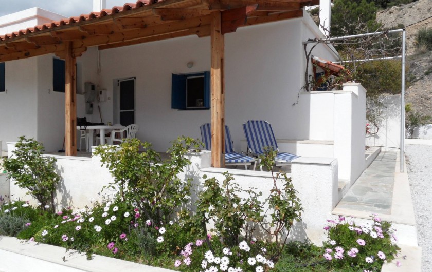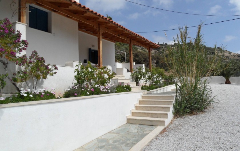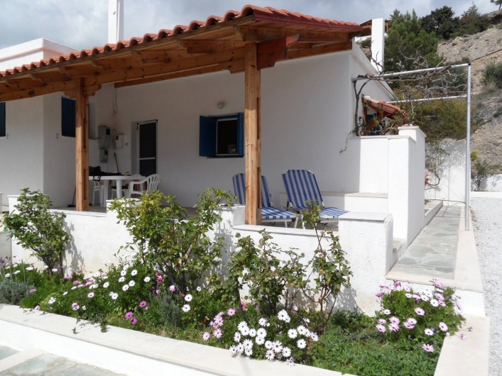 Les maisons confortables sont dispersées sur notre colline boisée, à environ 800 mètres de la plage. Elles ont une vue phénoménale sur la mer de Libye, la baie d'Agia Fotia, la vallée et les montagnes.