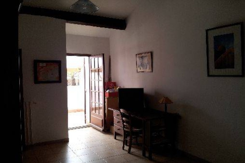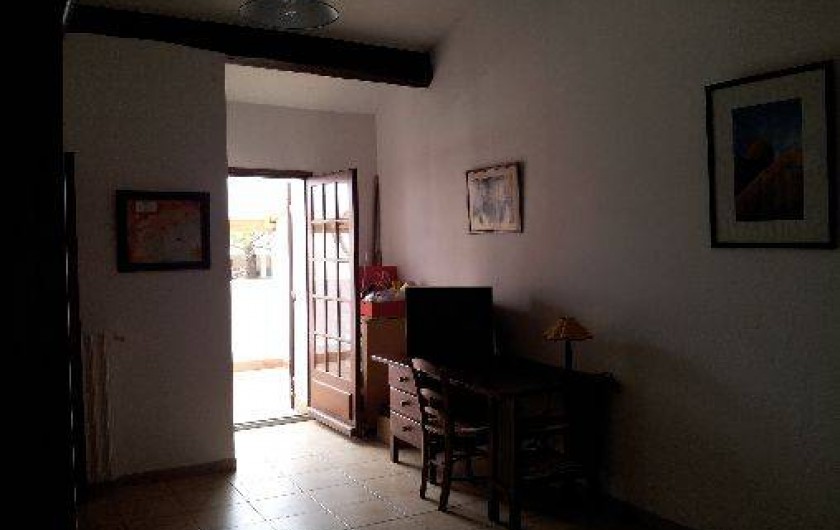 1 troisième chambre avec un lit pour deux personnes avec armoire, bureau et tv. Accès terrasse