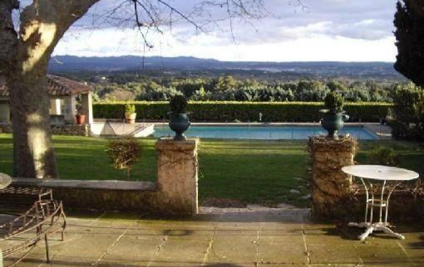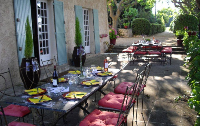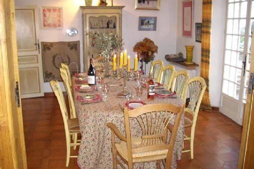 A 4 km,5 du Centre d' AIX en PROVENCE, et, située à 280 mètres d'altitude, plein sud, la ' Bastide Valmont'" , est une ancienne demeure de chanoinesse, et date de 1850. Elle possède 11 pièces dont 7 chambres et 16 couchages.Deux escaliers desservent le 1er étage. La propriété, close sur la totalité, s'étend sur 2ha , avec oliveraie , vignes et 2 ânesses dans les prés. Piscine de 13 x 5, tennis avec éclairage, et boulodrome de 30 m , éclairé, maison dans les arbres. 2 terrasses sous les 5 platanes centenaires, et 3 hamacs, sous les 3 tilleuls. Sur le plan sanitaire il y a: 2 … salles de bains, 3 salles d'eau et 5 wc. 3 réfrigérateurs, 2 l.vaisselle, 1 l. linge, 1 congélateur. internet, wifi. Un piano droit est installé dans le hall d'entrée. Un couple de gardiens habite une petite maison indépendante,dans la propriété, avec accès privatif. Aix -Tgv à 15 mn, aéroport de Marseille 30mn, golf de 18 trous contigu à la propriété. Supermarché à 1 km,2. Location UNIQUEMENT, à la semaine. Tarifs 3800 deSeptembre à Juin . Mois d'Aout : la semaine 5500 euro. Prévoir 150 euro, pour le nettoyage de la Bastide, en fin de séjour. Le parking voiture, peut contenir 6 Véhicules. Lire moins Lire la suite