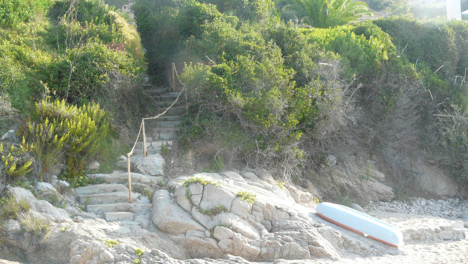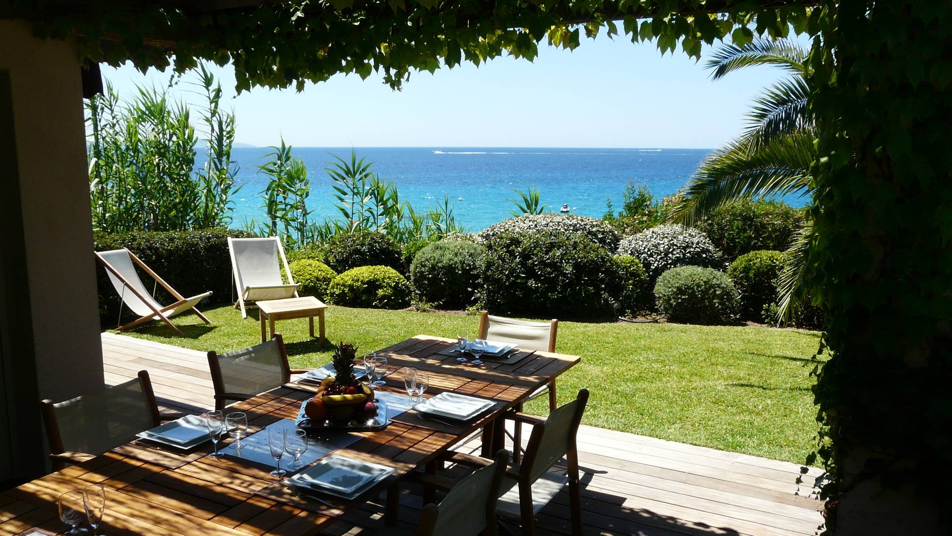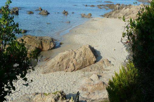 Construction récente située en bord de mer avec un accès direct sur une jolie crique de sable bordée de rochers et de maquis