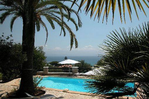 Piscine aux contours de charme entourée de 2000 m2 de jardins en plusieurs terrasses plantées d'agrumes et d'essences aux origines lointaines .