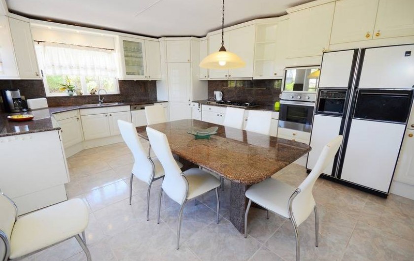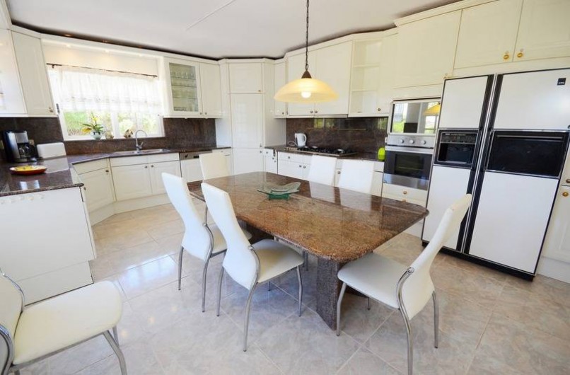 La cuisine américaine, est équipée avec réfrigérateur, micro-ondes, four, congelateur, lave-linge, lave-vaisselle, vaisselle/couvert, ustensiles/cuisine, cafetière, grille pain et bouilloire.